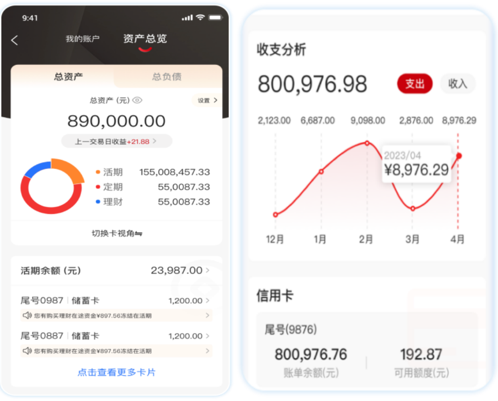 整合賬戶總覽。支持客戶自主辦理代扣簽約、賬戶掛失、換卡申請、交易安全鎖、限額調整等賬戶服務,支持客戶靈活設置卡視角與資產視角的總覽樣式,內容展示更明晰。
